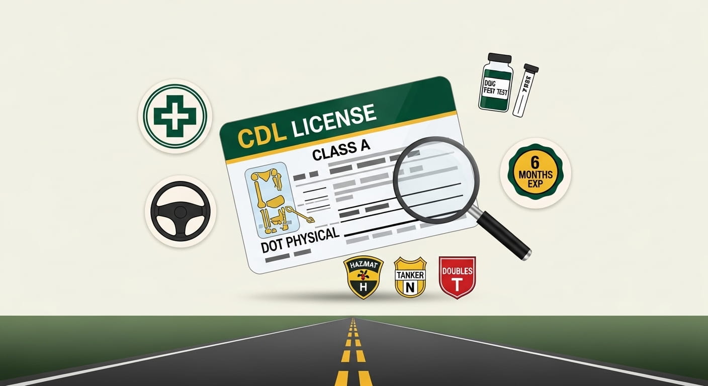 1. Class A CDL (for tractor-trailer) or Class B CDL (for straight trucks like dump trucks).
