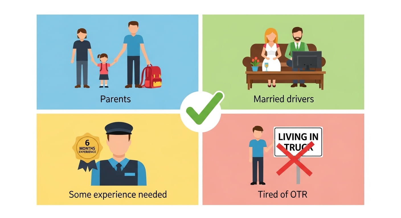 You are not a stranger in your own home. Your partner knows your schedule. Your kids know when you will be back. That stability is worth more than an extra 5 cents per mile.